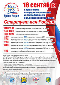 В Архангельске 16 сентября пройдет всероссийский день бега «Кросс Нации–2017». В этом году он проводится в рамках празднования 80-летия со дня образования Архангельской области.