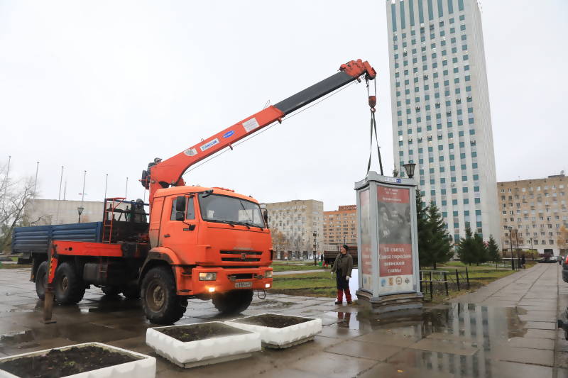 Сегодня две рекламные тумбы, принадлежащие компании «Норд-медиа», демонтированы на площади Ленина.