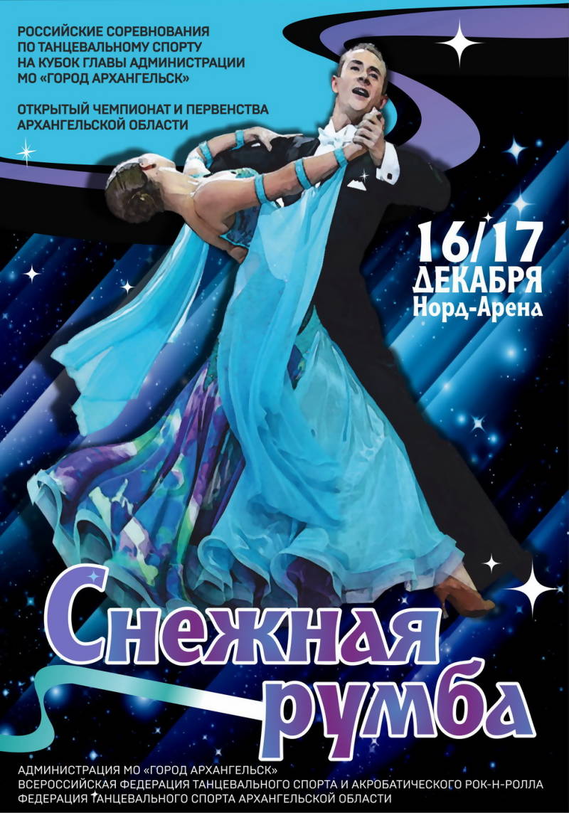 В Центре развития массового спорта «НОРД АРЕНА» 16 и 17 декабря в  шестнадцатый раз состоятся соревнования по танцевальному спорту «Снежная Румба - 2017» на Кубок главы Архангельска.