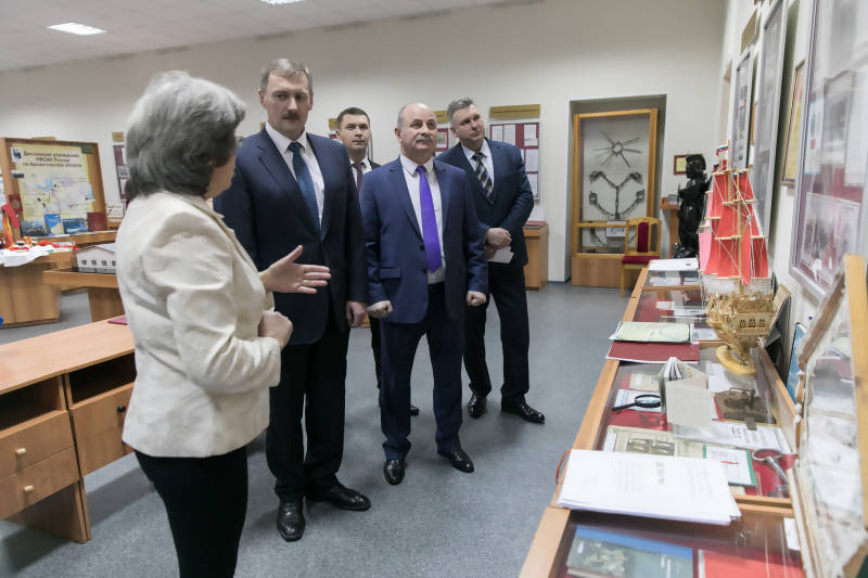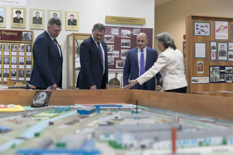 Градоначальник и заместитель главы – руководитель аппарата Николай Евменов познакомились с экспозициями музея истории УФСИН по Архангельской области. Хранитель музея Евгения Шахова рассказала, что музей организован сравнительно недавно – 7 лет назад – в нем уже есть уникальные экспонаты.