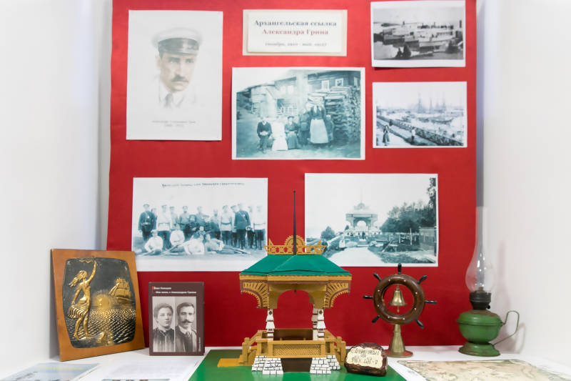 Среди них – по крупицам собранные архивные документы СЛОНА – специального лагеря особого назначения, который был расположен на Соловках, стенд музея посвящен Александру Грину, отбывающего ссылку в Архангельске.