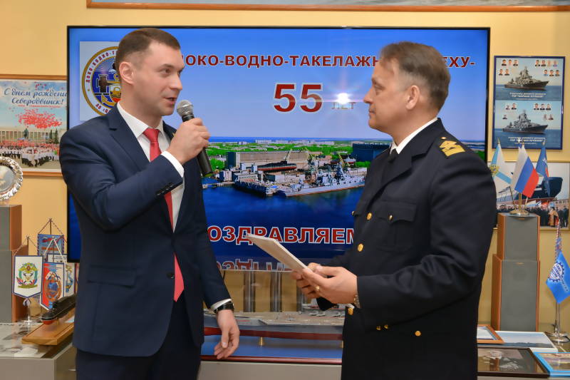 55 лет исполнилось доко-водно-такелажному цеху Центра судостроения «Звездочка» - одному из ведущих подразделений крупнейшего предприятия региона. Заместитель главы Архангельска – руководитель аппарата Николай Евменов от имени главы города Архангельска Игоря Годзиша поздравил с юбилеем знаменитый 22-й цех «Звездочки».