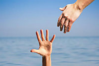 - если утопающий схватился за кисти рук спасателя, то последний должен сильно сжать свои руки в кулаки и резко повернуть их в сторону больших пальцев тонущего;