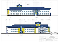 Здание кирпичное, двухэтажное Г-образной формы: на 1 и 2 этажах разместятся группы, залы для музыкальных и гимнастических занятий, медицинский блок, пищеблок, постирочная, помещения администрации, персонала, туалеты, кладовые. Высота помещений этажей - 3 метра.