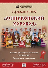 2 февраля в 15:00 в Архангельском городском культурном центре состоится концерт «Лешуконский хоровод» фольклорного коллектива «Княжиця» Лешуконского землячества, посвященный пятнадцатилетнему юбилею коллектива.