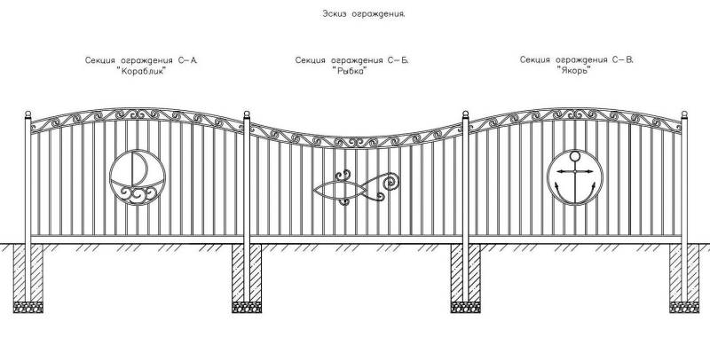 Эскизом предусмотрено, что ограждение будет не только надежным, но и красивым – с элементами, соответствующими морской образовательной программе школы.