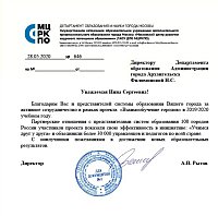 За активное сотрудничество в рамках проекта «Взаимообучение городов» в 2019-2020 учебном году департамент образования Архангельска получил благодарность организаторов проекта.