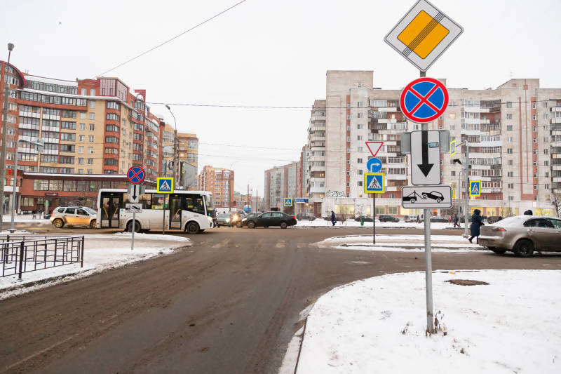 - ул. Воскресенская в районе пр. Ломоносова (запрещен левый поворот и разворот при движении в сторону привокзального микрорайона).