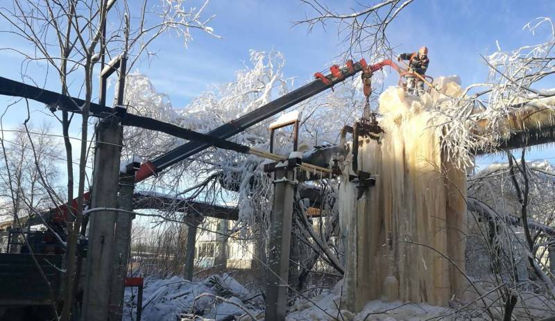 - После того, как был убран участок ледяной корки, наши специалисты смогли поставить хомут на свищ. Теперь глыба дальше расти не будет. Сколько по времени займет процесс ликвидации нароста – сказать сложно, поскольку делать это необходимо осторожно и без спешки. Главной задачей сейчас является очистка верхней поверхности трубопровода от масс льда, чтобы исключить возможность их дальнейшей нагрузки на коммуникации, - сообщил Андрей Воробьев.