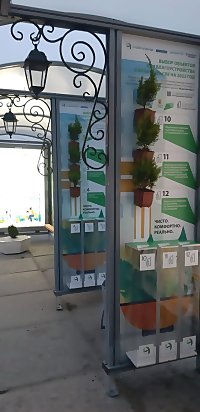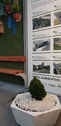 Выходя на остановку, пассажиры попадают в маленький «сквер». А еще в павильоне ожидания есть символические урны для «голосования», чтобы архангелогородцы могли выразить свое предпочтение в пользу того или иного объекта благоустройства по программе ФКГС. Для этого достаточно лишь опустить использованный проездной автобусный билет (чек) в соответствующий прозрачный «контейнер». Просто и наглядно – за чистоту и комфорт!При поддержке главы города Дмитрия Морева архангельские рекламисты создали «островок комфорта» в самом центре столицы Поморья. Несколько дней специалисты устанавливали информационные баннеры и декорации. Последним штрихом стали живые «деревья» в клумбах и кашпо.