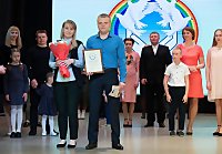 Затем Светлана Скоморохова вручила дипломы участникам и победителям конкурса. Победителем «Эстафеты семейного успеха» в номинации «Династии» стала семья Николая и Евгении Притыкиных. В номинации «Добрые дела добрых семей» были заявлены семьи, которые принимают активное участие в волонтерском движении. Победителем в ней признали семью Николая и Людмилы Карлиных. В номинации «Молодая многодетная семья» диплом победителя вручили семье Михаила и Валентина Волынкиных.