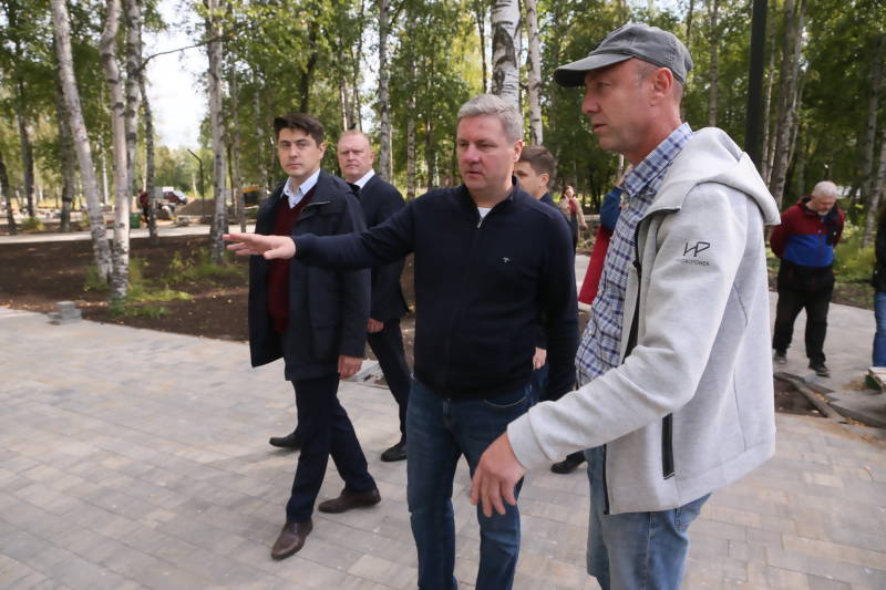 В Соломбале подрядная организация «Севдорстройсервис» завершает ремонт улицы Мещерского. На объекте участников рабочей поездки – Дмитрия Морева, Александра Спиридонова, а также депутатов областного Собрания Ивана Новикова и Сергея Красильникова - встретили рабочие и многочисленная дорожная техника. Здесь уже подготовили основание и приступали к укладке тротуара. Работы займут несколько дней, а затем будет нанесена разметка. В то же время на Никольском проспекте завершается благоустройство сквера: остается лишь проверить работоспособность освещения и провести уборку после строительных работ.