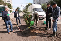 Дмитрий Морев, Александр Спиридонов и Иван Новиков внесли свой вклад в благоустройство - приняли участие в посадке деревьев.