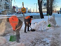 Очистка, погрузка снега с парковок, автобусных остановок, вывоз снега проводились на: ул. Гайдара 25, 49; пр.Чумбарова-Лучинского (от ул. Карла Либкнехта до ул. Воскресенской). Тротуары чистили у перекрестка ул.Урицкого/пр.Ломоносова.