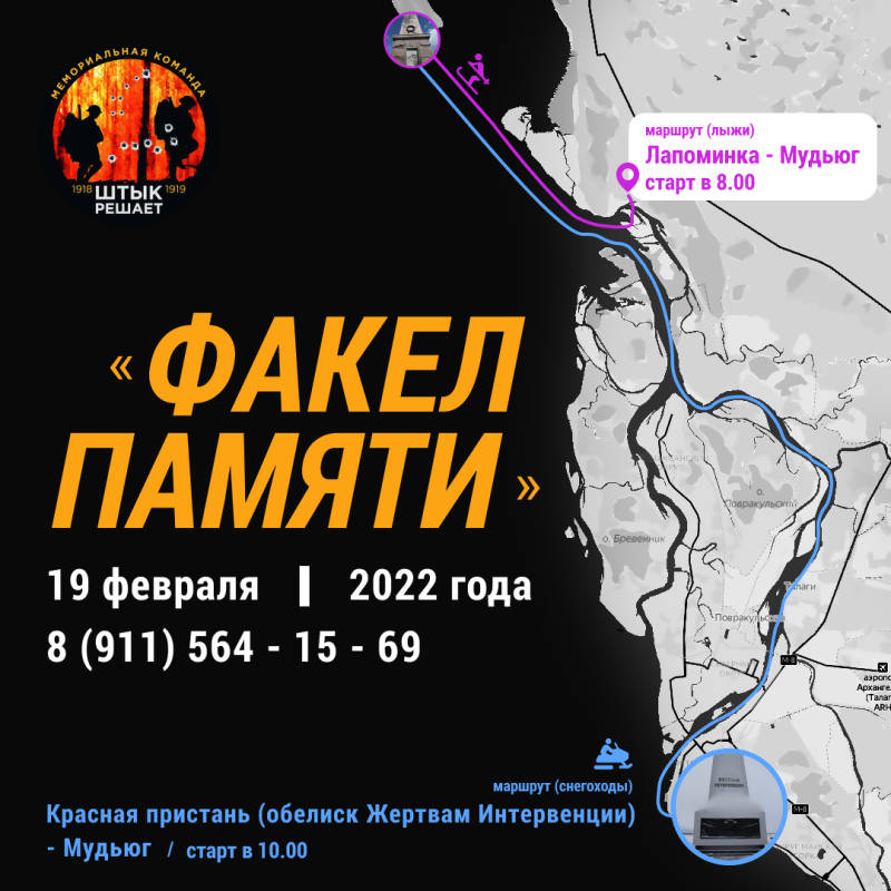 Организаторы рейда АНО «Победа» и мемориально-исследовательская команда «Штык Решает» планируют возродить некогда популярную традицию зимних походов на остров Мудьюг. Рейд «Факел Памяти» проводится при поддержке Правительства Архангельской области, Российского военно-исторического общества, отряда специального назначения Росгвардии «Ратник».