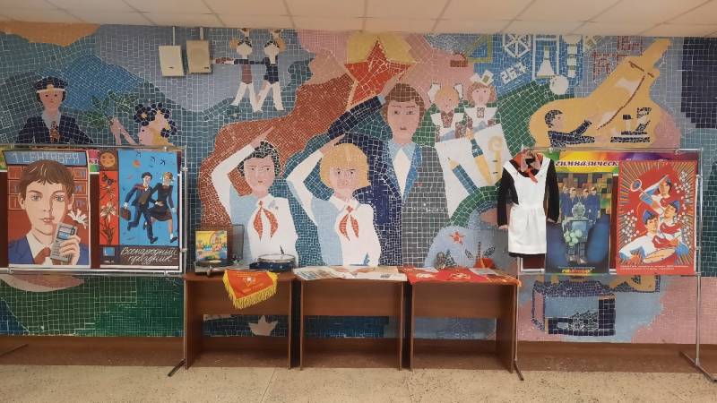 В гимназии №24 школьников радует и вдохновляет мозаичное панно о пионерской жизни