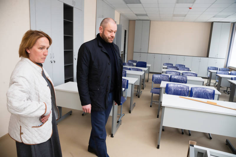 Заместитель главы Архангельска - руководитель аппарата Денис Лапин провёл выездное совещание в школе № 22, где завершается капитальный ремонт. Внутренние работы проведены, в классах уже расставляют мебель.