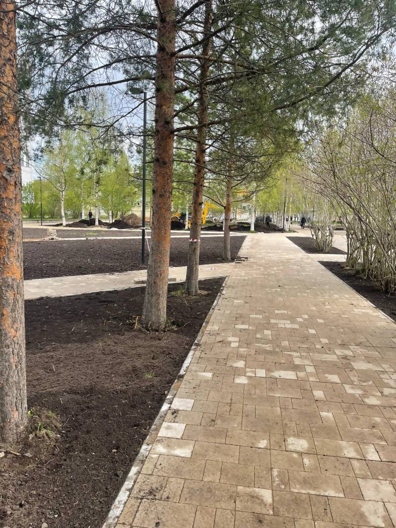 В парке им. Ленина уже вышли на завершающий этап. Принято решение о дополнительной подсыпке грунта в низинах. Работы планируется закончить к середине июня.