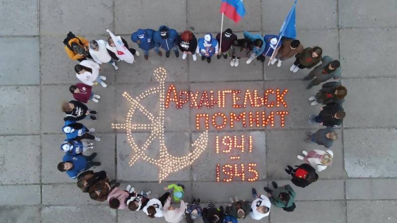 Отметим, что накануне Дня памяти и скорби представители молодежных организаций приняли участие в акции «Огненные картины», выложив из более чем 700 свечей надпись «Архангельск помнит 1941 – 1945» на площади Мира у Вечного огня в Архангельске. Ее украсил якорь и штурвал как олицетворение вклада нашей области в Победу.