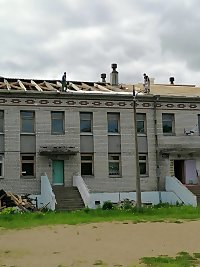 В настоящее время подрядчик выполняет очистку фасадов от перхлорвиниловых и масляных красок и облицовку цоколя штукатуркой. Также идёт заливка крыши, армирование подстилающих слоёв кровли, устройство мелких покрытий под крышей из листовой оцинкованной стали.