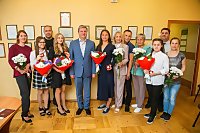 В этом году в Архангельске - 139 золотых медалей и 81 серебряная. Лидерами стали гимназии №3, 24, 25 и школы №14, 20 и 35. Дмитрий Морев поздравил выпускников 25 гимназии и вручил им аттестаты с отличием: