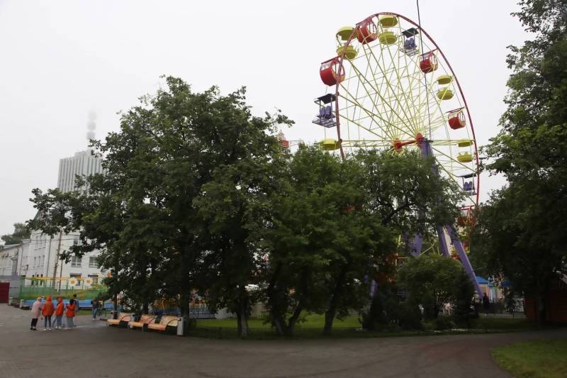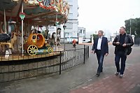 50 лет исполняется архангельскому парку аттракционов. Глава города Дмитрий Морев вместе с директором учреждения Владимиром Хотеновским перед началом праздника осмотрели территорию «Потешного двора».