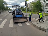 Силы специализированной техники сосредоточены на механической очистке и мойке проезжей части дорог 1 и 2 категорий. Параллельно идёт подметание тротуаров, автобусных и парковочных карманов, ведутся работы по планировке гравийного покрытия дорог 3 категории.