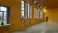 Сейчас в спортзале заканчиваются отделочные работы, а стены обшиты современными панно со спортивной тематикой. В зале полностью обновлена электропроводка и закуплены новые светодиодные светильники, благодаря чему света станет больше, а затраты на электроэнергию меньше.