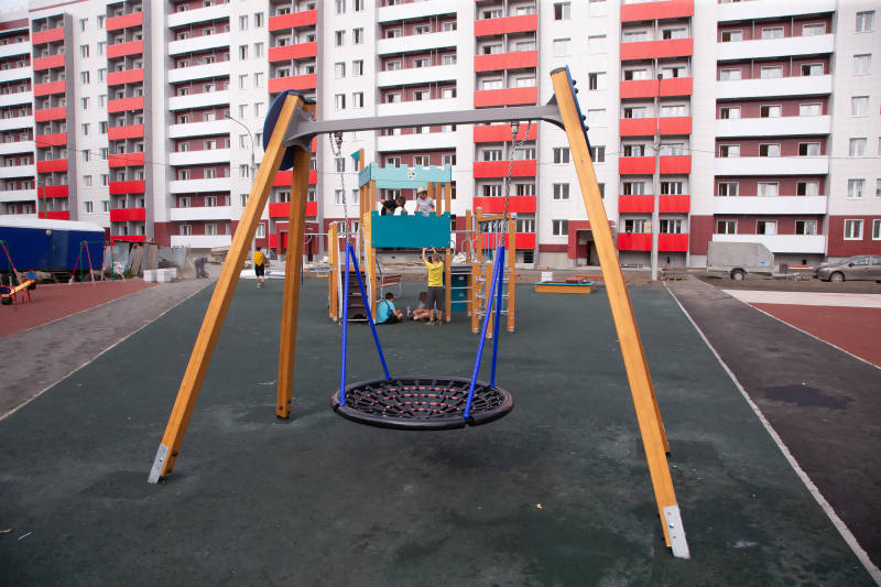 Для горожан параллельно создается необходимая инфраструктура – у домов появляются современные детские и спортивные площадки, в районах строят новые детские сады, школу. Все необходимое для комфортного проживания граждан, переселяющихся из аварийного жилфонда.