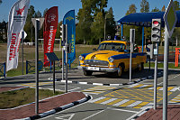 За обстановкой следят знаменитый Дядя Степа и инспектор безопасности дорожного движения – фигуры выполнены из дерева. Гордость площадки – настоящий автомобиль ГАЗ 21 «Волга».