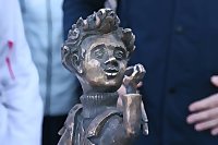 На парапете набережной Северной Двины в районе пересечения с улицей Попова установили второго персонажа проекта «Кудесники - хранителя Севера», который стал подарком от компании «Севералмаз». Вторая скульптура держит в руках алмаз.