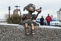 18 октября - День кудесника в России. Именно сегодня в городе установили третью, последнюю скульптуру проекта «Кудесники – хранители Севера». В этот раз это девочка, хранительница каргопольской глиняной свистульки. Она сидит на парапете рядом с Гостиными дворами.