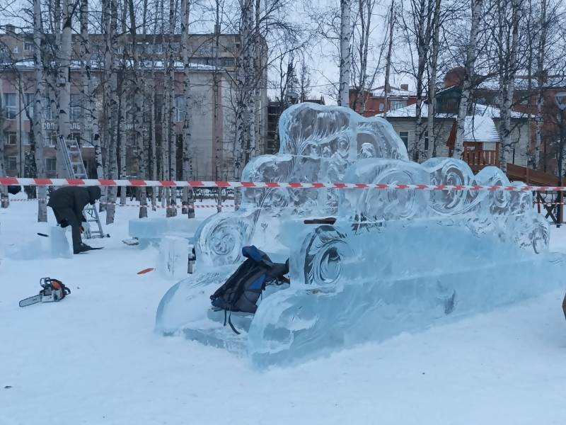 Скульпторы завершили создание ледовых фигур у культурного центра «Соломбала-Арт».