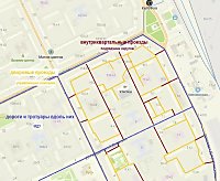 Для наглядности опубликована схема одного из кварталов, на которой разными цветами обозначено, какие проезды являются внутриквартальными и убираются округом, какие дворовыми и должны содержаться УК.