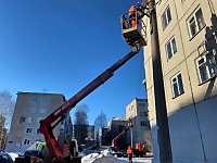 На улице Вологодской установили поддерживающую арматуру на опорах наружного освещения.