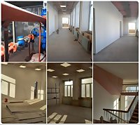 На 3 и 4 этажах завершена штукатурка стен и установка новых светильников. В теплоузле установлен новый водомер.