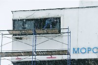 Несмотря на снежную погоду, рабочие уже приступили к монтажу табло. В ближайшее время устройство подключат и настроят.