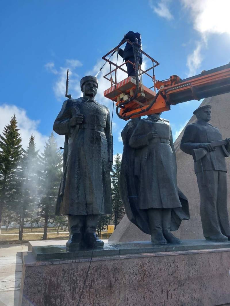Также сегодня началась мойка памятников военной истории.
