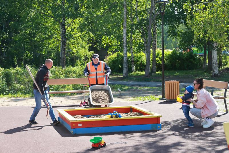 - Мы оплатили подрядчику только тот объем работ, который он исполнил. А в этом году организовали завершающий этап. Сейчас наше муниципальное предприятие «Городское благоустройство» завозит грунт для формирования красивых газонов и до конца июня засеет траву. Я застал рабочих, которые наполняют песочницу свежим песком. Несколько больше времени потребуется, чтобы провести асфальтирование у контейнерной площадки. Поставил задачу департаменту до Дня ВМФ провести все торговые процедуры и собственно укладку асфальта, - сообщил Дмитрий Морев.Прошлогодний подрядчик в ближайшие две недели устранит небольшие недочеты по прорезиненному покрытию, а жители могут выступить с инициативой посадки деревьев и кустарника. Уже сейчас двор выглядит современными и интересным, а с озеленением будет просто образцовым!