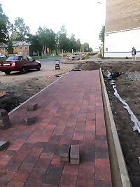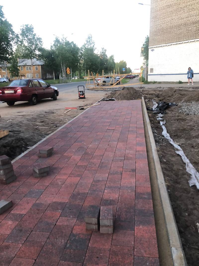 Продолжается благоустройство сквера на пересечении ул.Гагарина и ул.Тимме, в районе швейной фабрики.Работы выполняет компания «Северная роза», по словам ее директора Ирины Кузьминой, они ведутся на объекте с опережением графика, сейчас продолжается установка бортовых камней, укладка тротуарной плитки.
