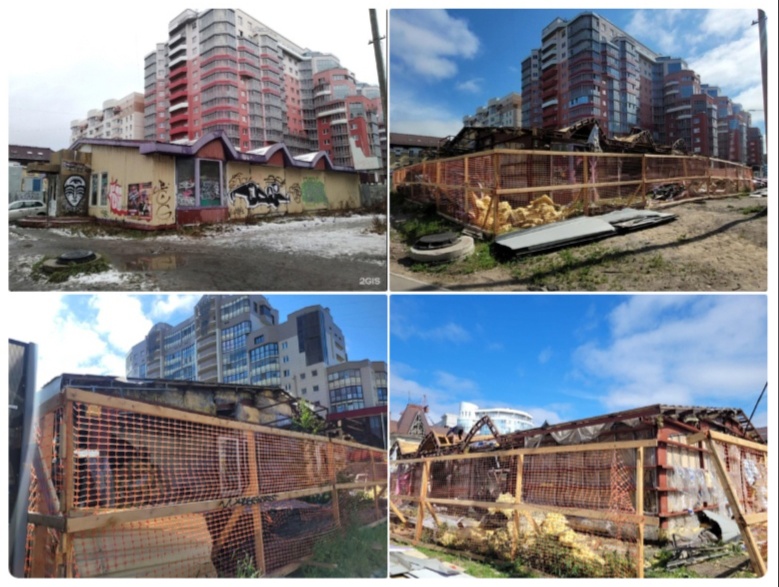Администрацией Архангельска было подано заявление в суд о признании постройки на перекрёстке проспект Ломоносова и улицы Поморская самовольной. Но собственник, не дожидаясь решения суда, уже приступил к сносу павильона. Внешний облик одной из центральных улиц от этого только выиграет: полузаброшенное сооружение портило вид.