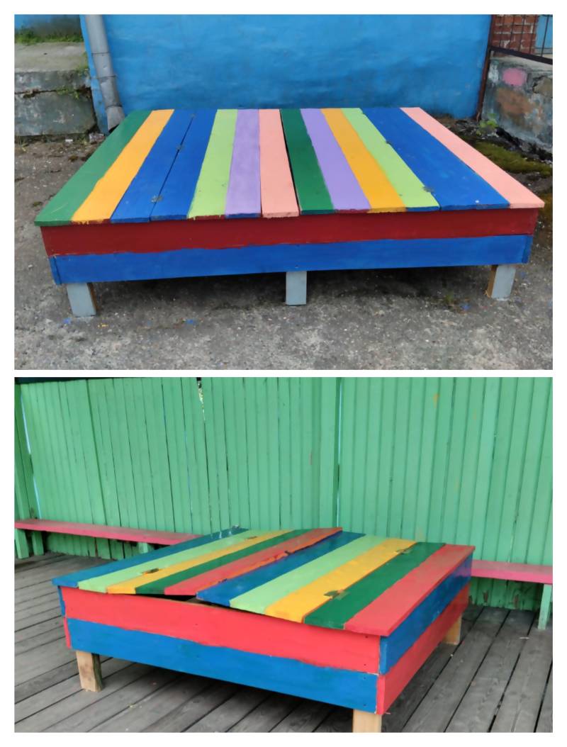 Кроме того, на прогулочных участках покрашены малые архитектурные формы и произведен необходимый ремонт построек. Столяр изготовил две новые песочницы на прогулочных участках двух групп, обустроены новые клумбы, в которые посадили яркие цветы.