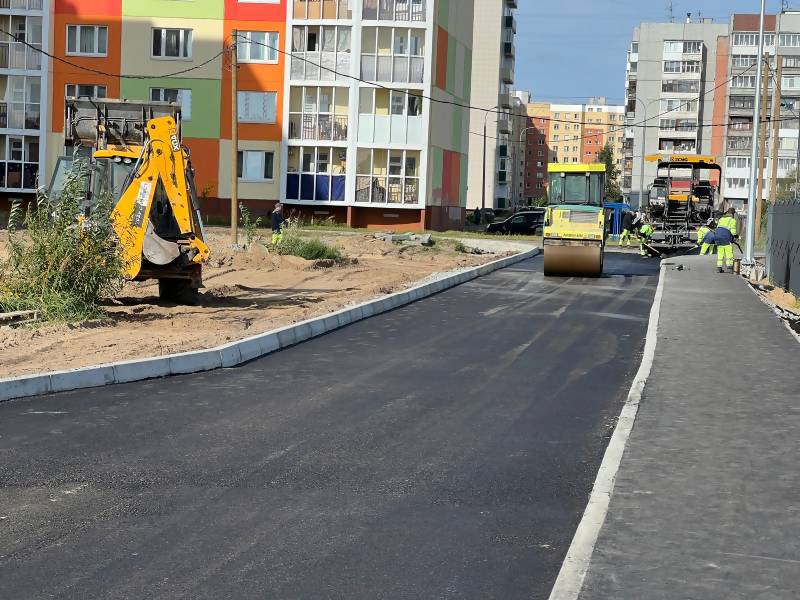 Завершилась укладка нижнего слоя асфальта для организации проезда к новой школе на 1600 мест со стороны Московского проспекта.