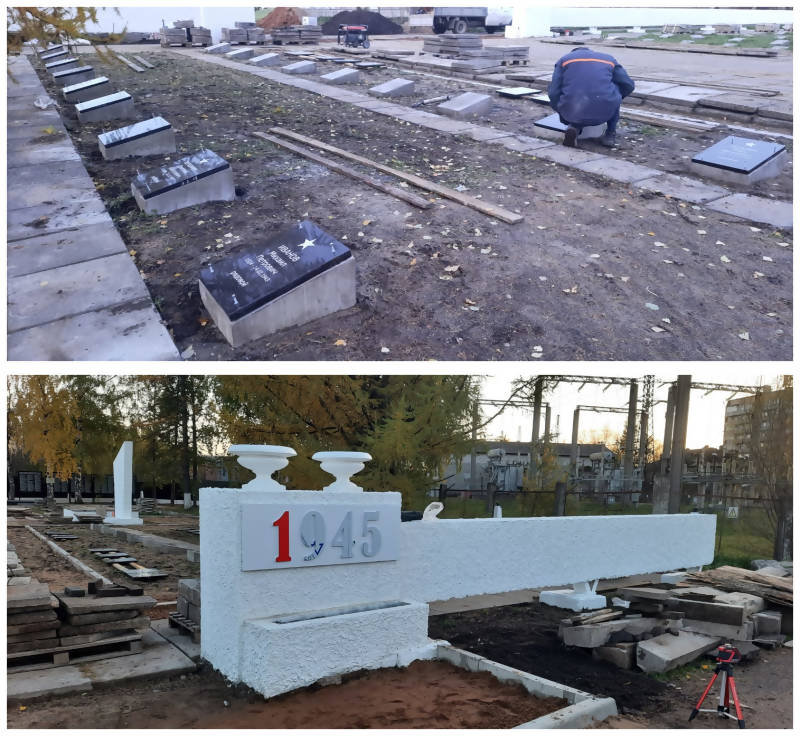 По сохранившимся фотографиям разных лет можно судить, что захоронение пережило разные времена: было с деревянными памятниками, клумбами, затем бетонными плитами. В этом году впервые мемориальные таблички выполнены из гранита – природного камня, который символизирует память и уважение.