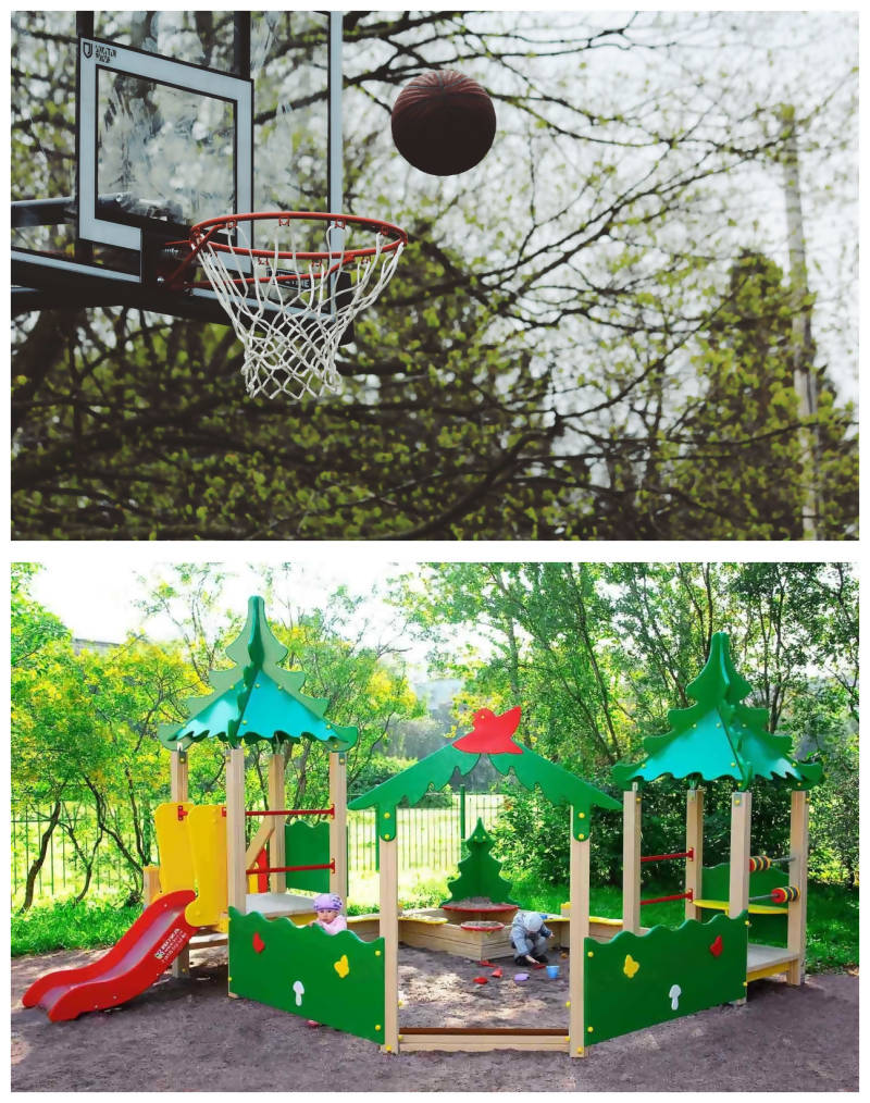 - баскетбольная стойка и три спортивных тренажера на ул. Дежневцев, 7/1.