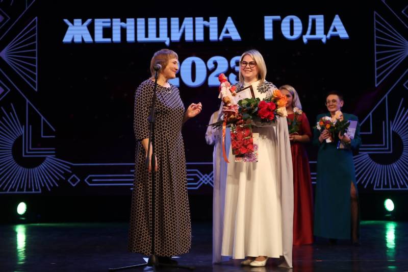 Переходящий символ конкурса – куклу Берегиню – победительнице вручила обладательница звания «Женщина года – 2022» Ольга Махина.