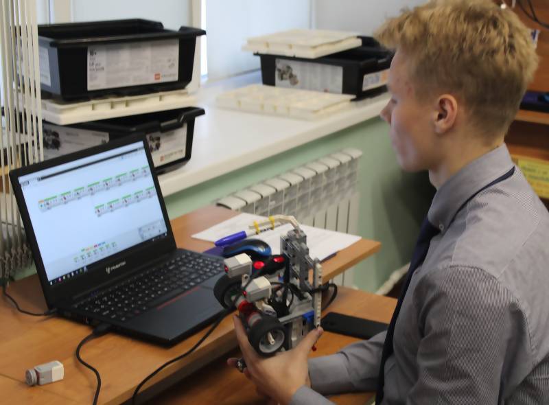 После у них был практический тур, на котором было необходимо собрать робота и запрограммировать его движение по сложной траектории.