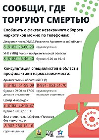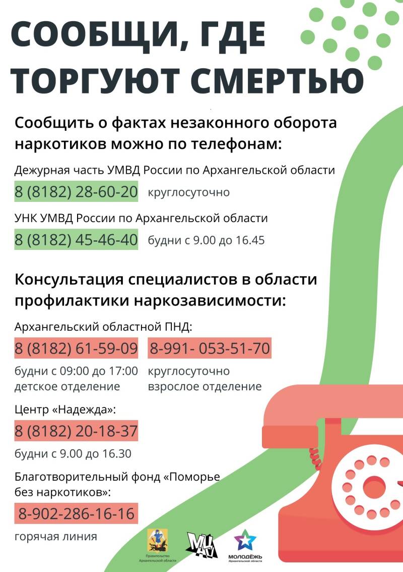 на телефон горячей линии благотворительного фонда «Поморье без наркотиков» ‒ 8-902-286-16-16.