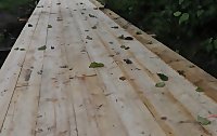 Устройство дощатого настила будет производиться из досок длинной 4-6,5 м шириной 150-200 мм, толщиной не менее 44 мм с прошивкой гвоздями и укладкой поперечных лаг из бруса. По условиям контракта материалы подрядчиком пропитываются специальным влагозащитным средством.
