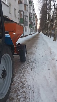 На тротуарах вдоль улиц МДУ задействовало 4 пескоразбрасывателя. Они работают в разных округах, планомерно обрабатывая пешеходные дорожки.